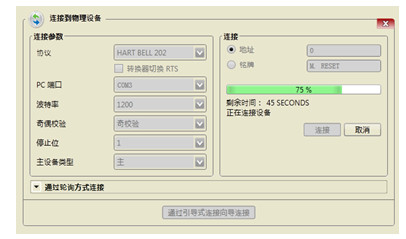 选择HART MODEM所对应的端口号,注意:连接之前请安装好HART MODEM的USB驱动程序,若无驱动请联系锟鹏公司